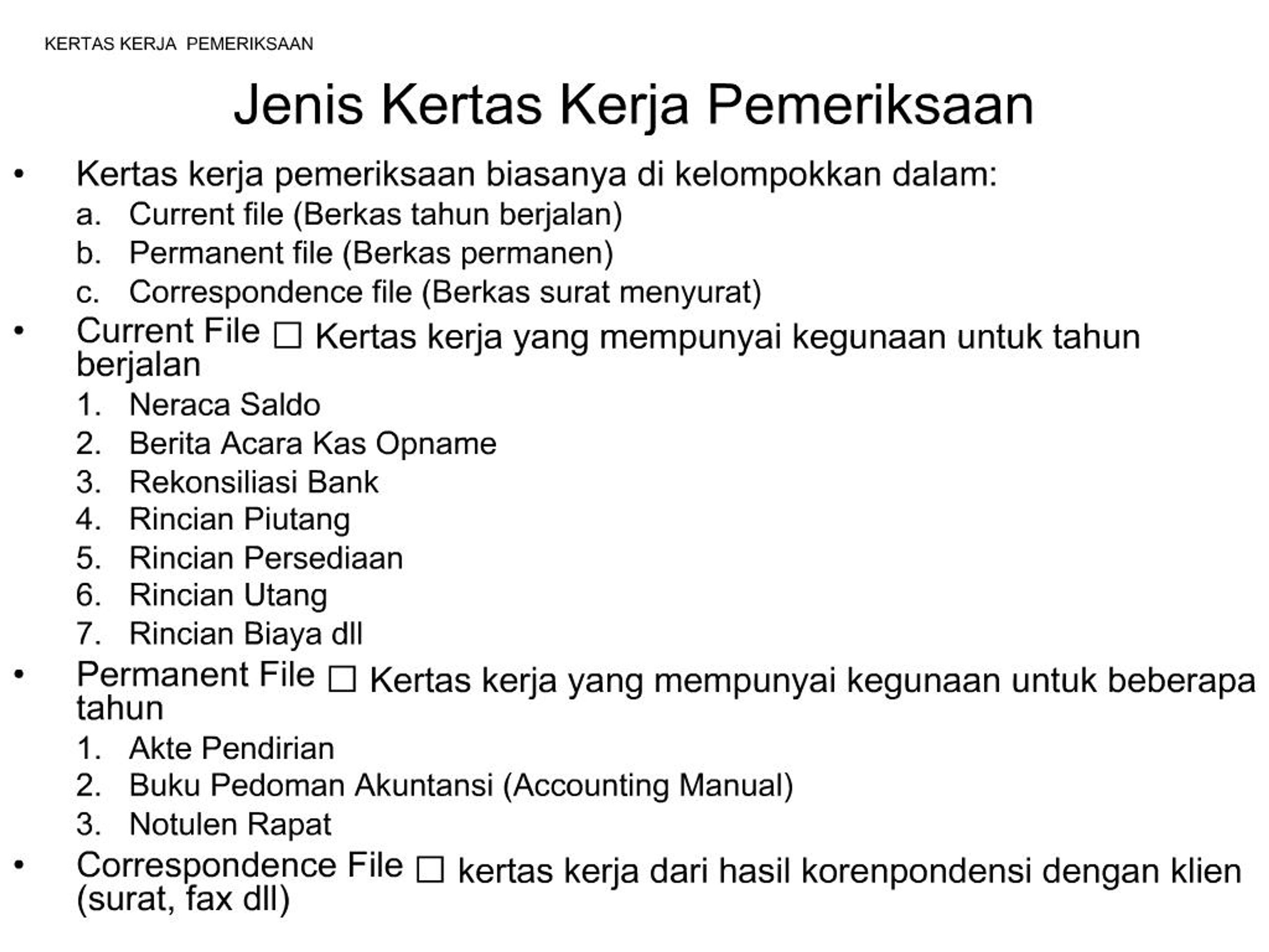 Mempelajari kertas kerja audit tahun lalu, dan melakukan walk through. Memelihara dan menyimpan kertas kerja, laporan auditor independen. Mendesai prosedur audit untuk audit piutang dagang, menggunakan kertas kerja, perencanaan bukti sebagai panduan. Gambar 9 list konfirmasi piutang. Atas kelemahan yang teridentifikasi, maka penulis sarankan agar perusahaan. 67, buat kertas kerja audit atas laporan keuangan pt omg dengan prosedur sbb:. 4, dalam memeriksa penjualan dan piutang dagang saudara mendapatakan. Piutang usaha adalah piutang yang berasal dari penjualan barang dagang. Sebagai contoh, pendapatan pada perusahaan dagang dan perusahaan. Sebagai contoh auditor dapat menguji piutang. Lalu dan buku 2 berisi kertas kerja pemeriksaan. Menemukan adanya perbedaan saldo piutang usaha yang tercatat di laporan keuangan pt x dengan surat balasan konfirmasi pada kertas kerja pemeriksaan. Top schedule adalah kertas kerja yang digunakan untuk meringkas informasi.