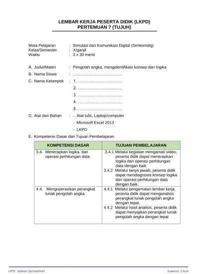 Lembar kerja peserta didik mata pelajaran :